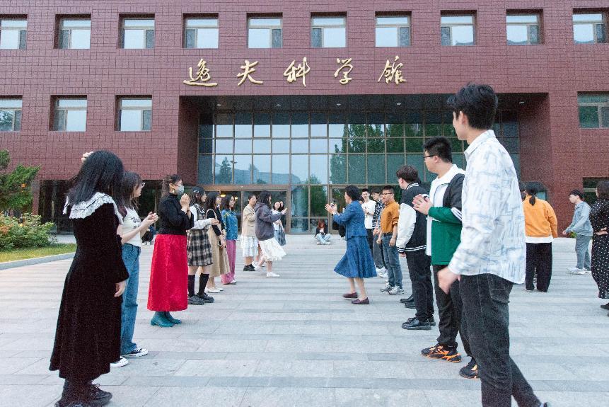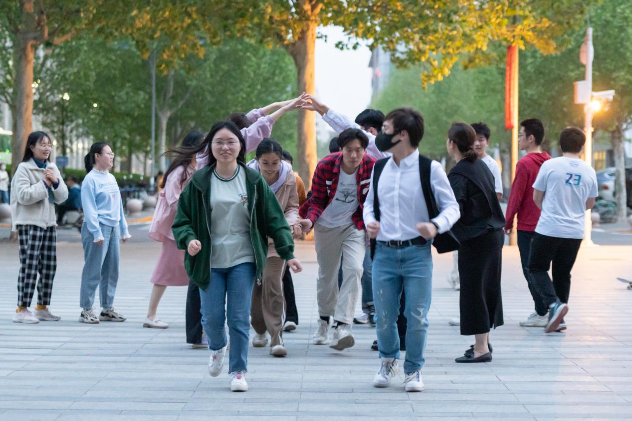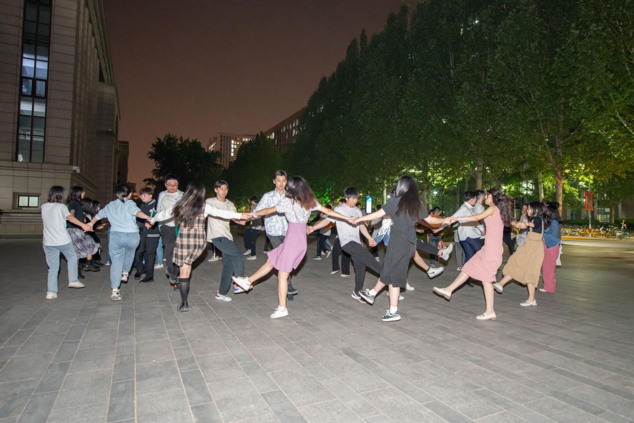 舞以达欢,以舞寄情。4月19日晚,学院路校区逸夫科学馆前音乐再次响起,“青春舞步”露天舞会第二次美育博雅课程现场,50余位同学跳动轻松愉快的步伐,跟随节奏的律动,释放学业压力,增进彼此了解,感悟舞蹈之美。夜幕拉起,同学们的欢跳热情并未降温。此次活动还吸引了中国石油大学研究生会的同学们前来学习。