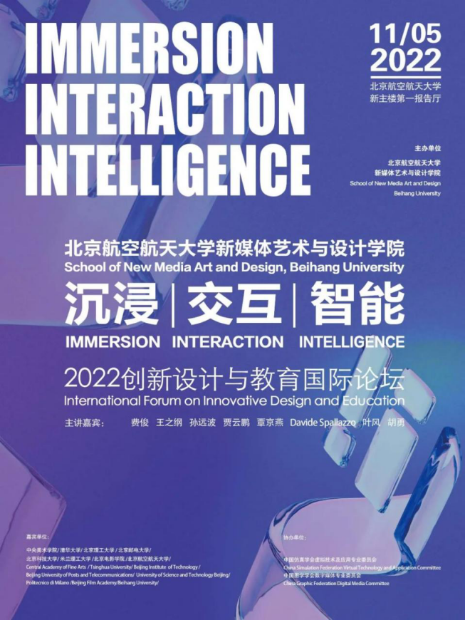 主办,中国仿真学会虚拟现实技术及应用专业委员会、中国图学学会数字媒体专业委员会协办的“沉浸|交互|智能——2022创新设计与教育国际论坛”在4k影院