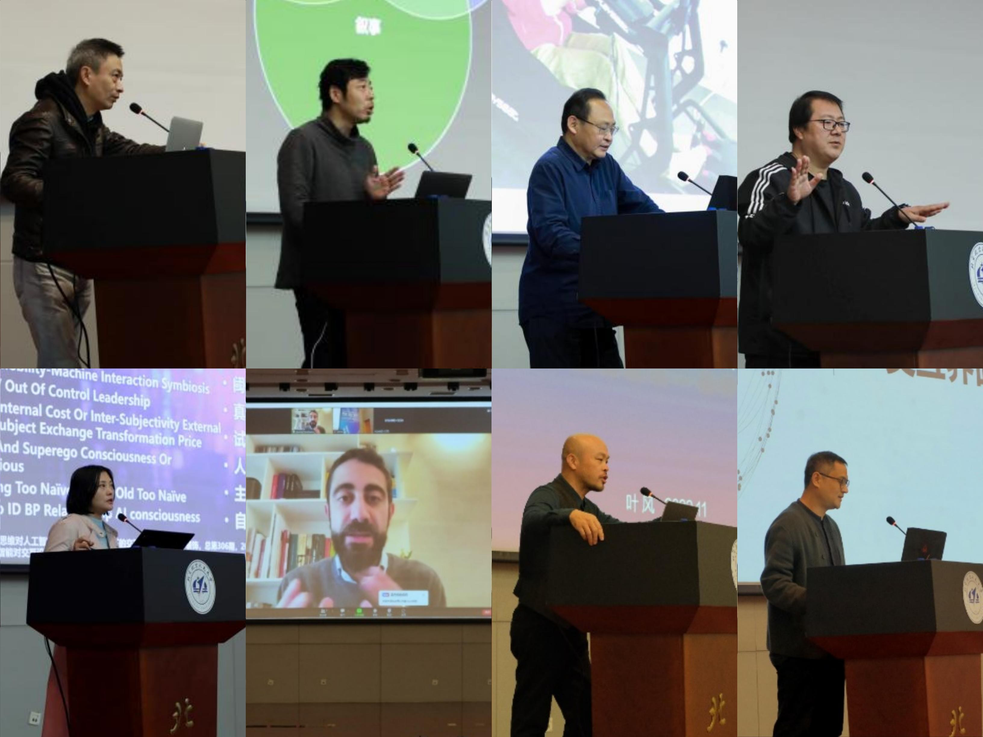 胡勇和曹翀两位老师主持。中央美术学院费俊教授、清华大学王之纲教授、北京理工大学孙远波教授、北京邮电大学贾云鹏教授、北京科技大学覃京燕教授、米兰理工大学Davide Spallazz教授、北京电影学院叶风教授、4k影院