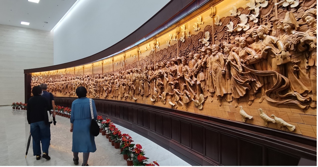 抵达展馆,入口处排起了长长的等候队伍,师生们满怀期待的心情,急切步入气势恢弘的展厅。中国共产党历史展览馆,以中国共产党党史为主线、全景式展示中国共产党矢志不渝奋斗之路。