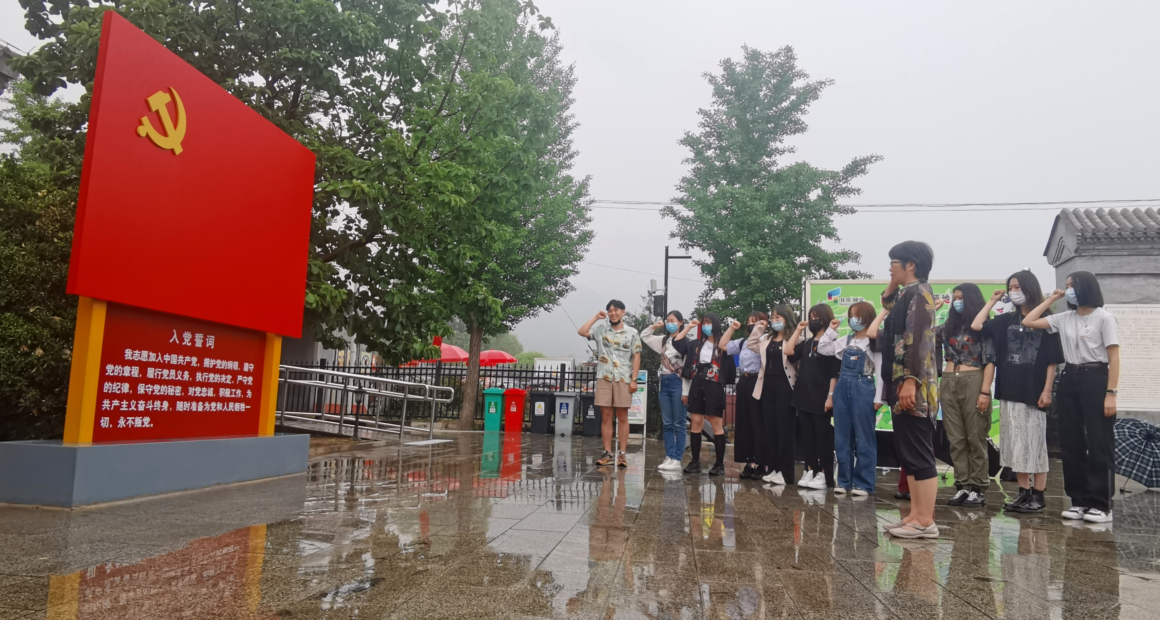 焦庄户地道战遗址纪念馆位于北京市顺义区龙湾屯镇燕山余脉歪坨山下,距市区60公里。虽然路上飘起了蒙蒙细雨,但是挡不住师生们高昂的热情。在纪念馆门前,学院师生党员代表在学院党委书记王群的领誓下,在党旗前庄严进行入党宣誓,进一步坚定理想信念,并缅怀革命先烈的英雄伟绩。
