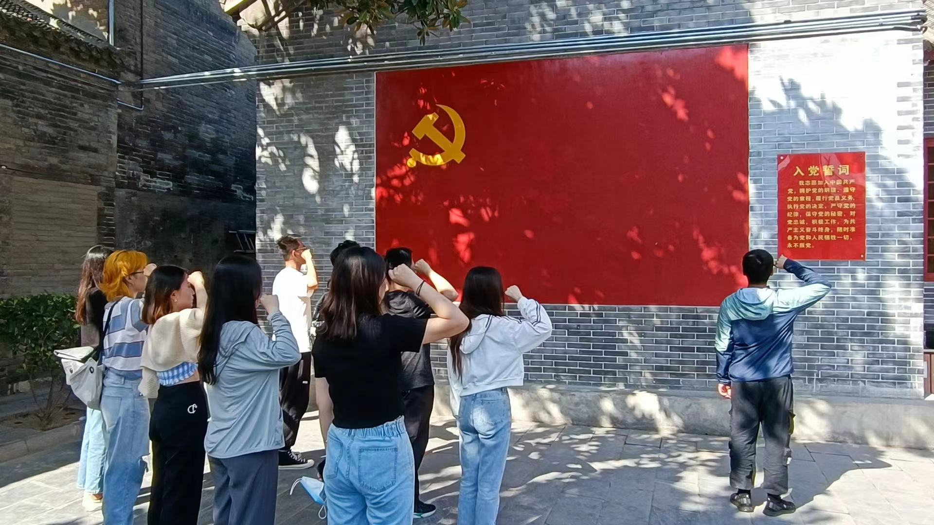 八路军驻洛办事处纪念馆,简称“洛八办”纪念馆,是洛阳市唯一的一处对外开放的革命旧址纪念馆,学院本科生联合学生党支部在开展艺术考察途中,集体前往纪念馆进行了参观。在纪念馆历经沧桑的院落前,支部党员面对党旗进行了庄严宣誓,缅怀革命先烈,坚定入党初心。