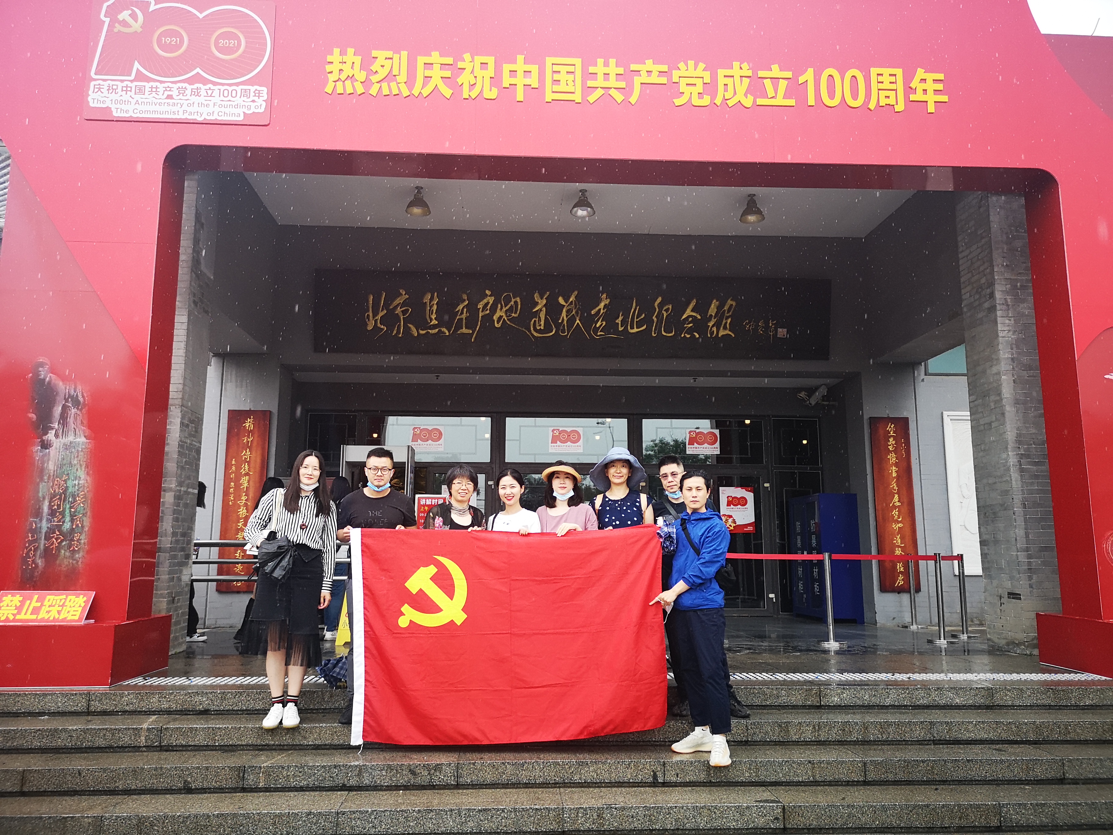 学院教职工党支部与学生党支部在焦庄户遗址纪念馆合影留念
