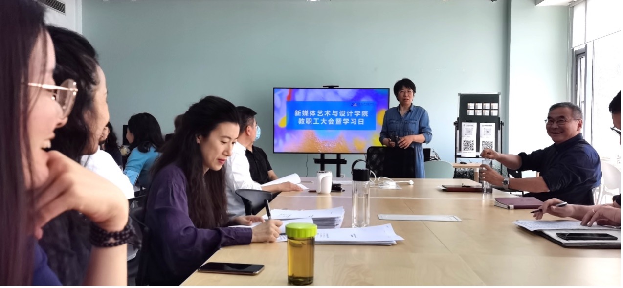 62日下午,学院在新主楼B332组织召开了全体教职工党课“学习日”活动。学院王群书记介绍了学习的主题:美术经典中的党史学习之徐悲鸿绘画中的红色精神,该讲座由党员教师赖盛老师主讲。