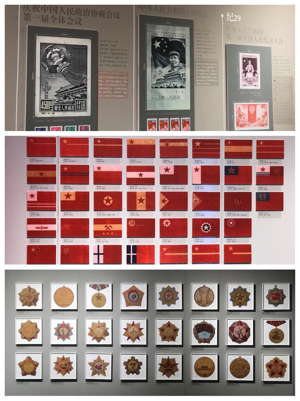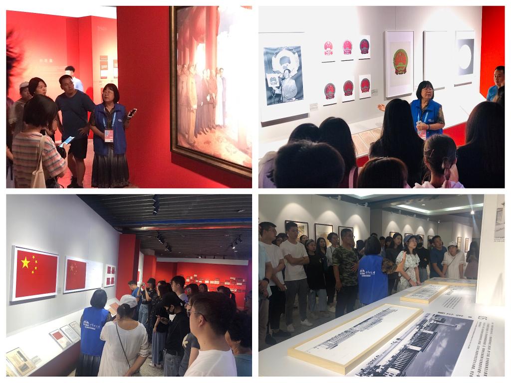 丰富的史料带着大家来到了建国初期,国家形象是国家软实力的重要组成部分,在参观中,大家了解了建国初期国旗、国徽、国歌的确定过程,以及作为国家形象重要载体的货币、建筑装饰设计和工业产品设计的整体变迁。