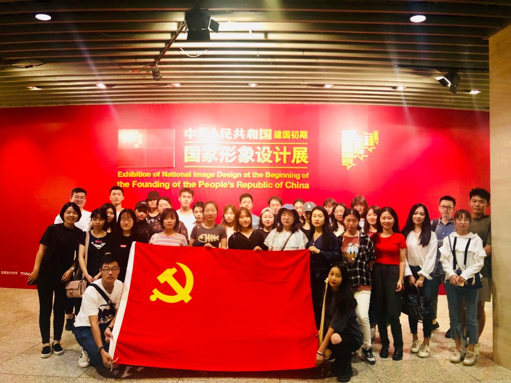 2019年9月25日下午,新媒体学院本、研学生党支部的同学们在党委副书记董萍萍和赵之昱、王硕、张引、聂自超等几位班主任的带领下,一同来到中华世纪坛世纪大厅,参观“中华人民共和国成立初期国家形象设计展”。