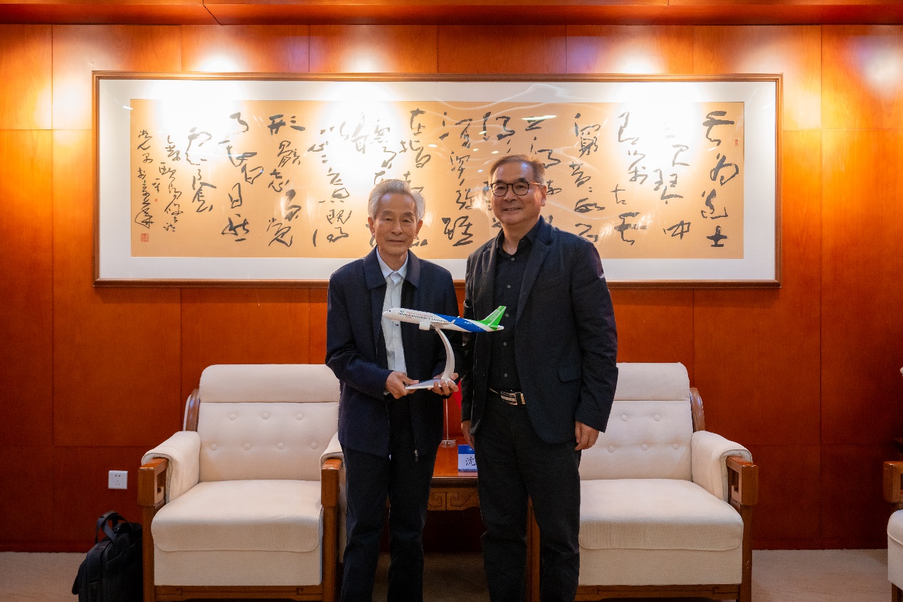 讲座开始前,4k影院 主任兼4k影院 院长沈旭昆教授与李未明亲切交流,并向李未明赠送北航纪念品。