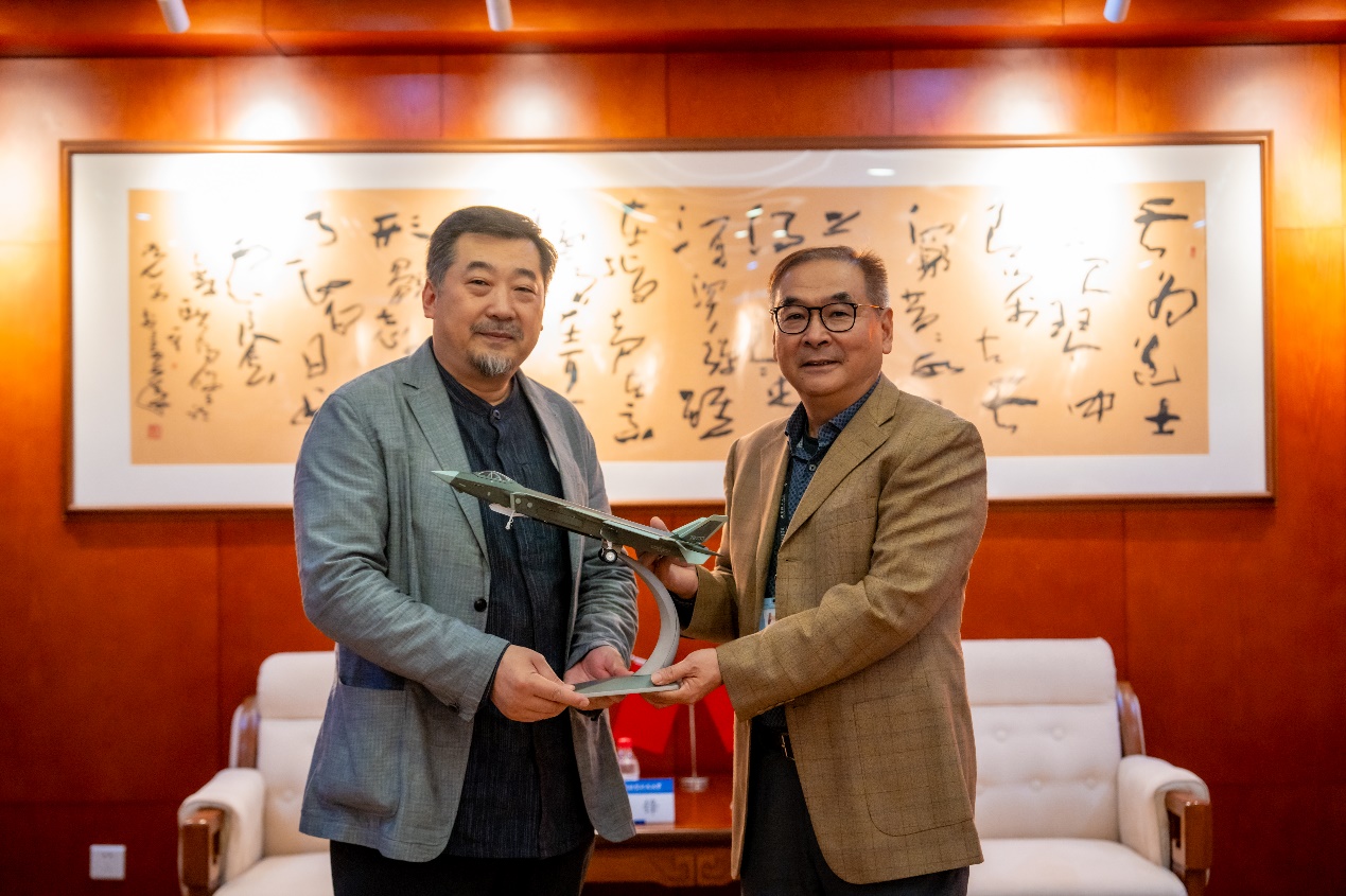 讲座开始前,4k影院 主任兼4k影院 院长沈旭昆教授与邹锋亲切交流,并向邹锋赠送北航纪念品。
