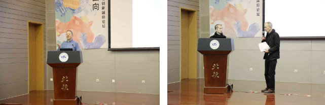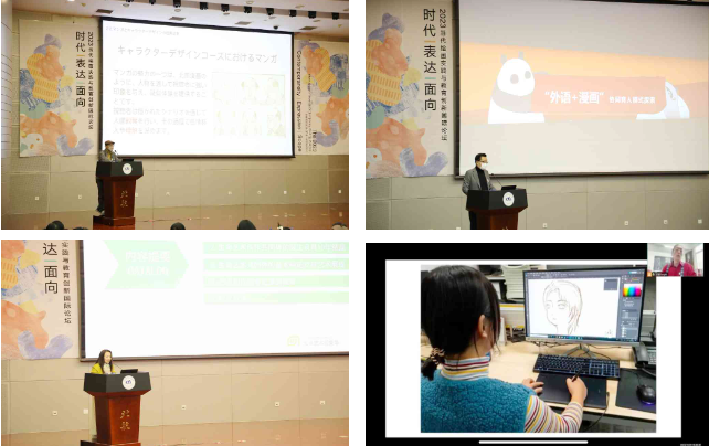 庄维嘉副教授主持。京都精华大学辻田幸広教授带来《漫画学院的角色设计课程是什么?》主题报告,辻田幸広教授提出主题的重要性,要自发性思考,去积极的投入故事世界。同时他还详细介绍了漫画学院与课程设置,让大家理解角色设计的多样性。北京第二外国语学院日语漫画文创专业陶冶教授带来《“外语+漫画”协同育人模式探索》主题报告。陶冶教授介绍了当下人才培养的特色以及平台,展现了“一体化”特色人才培养模式、北京漫画学会、创意漫画沙龙、科研院建设以及国内首家漫画馆内沉浸式学习体验。中国传媒大学金妹教授带来《“生命艺术共同体”对艺术创作生命之源的探索》主题报告。金妹教授提出:作为艺术家总结艺术创作经验,实质上也就是将艺术创作中的生命成长过程,活生生地再次展现出来,将艺术作品中“休眠”的艺术生命召唤出来,要尽可能把艺术的形式生命化,创造出气韵生动的传神形象,即强调艺术必须回归生命的本源境界,并指出其当代价值。瑞典籍华人艺术家王彤老师带来《“未知的日常”——日常体验中的个性化创作》主题报告。王彤老师首先分析了中外艺术品的发展演变,然后针对在北航做工作坊期间的自己和学生一起创作的过程提出“绘画是一种不断演变的跨界行为”的观点。