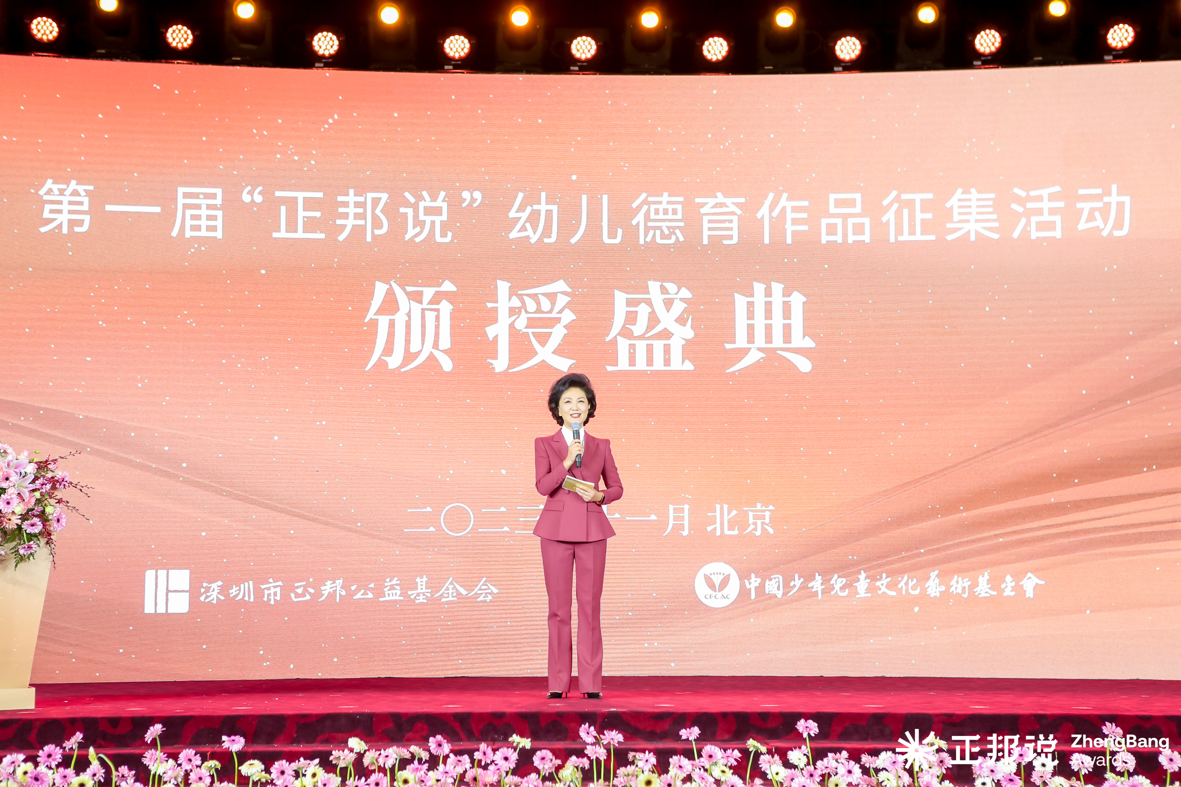 11月26日,第一届“正邦说”幼儿德育作品征集活动颁授盛典在北京饭店金色大厅举办,向社会公布第一届“正邦说”评审结果,并为获评“年度杰出作品”“年度佳作提名”作品的创作者授牌以及颁发证书。