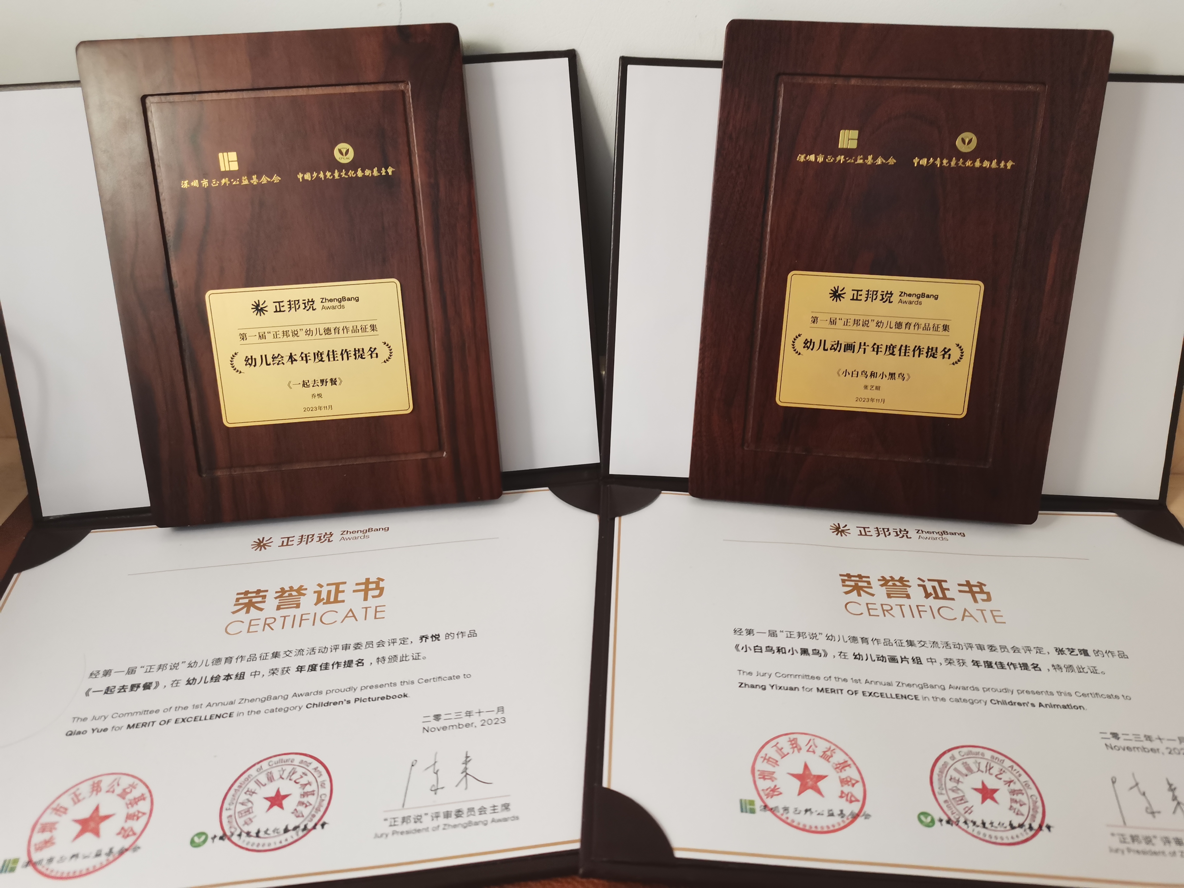 张艺暄同学和乔悦同学分别获得幼儿动画和幼儿绘本年度佳作提名