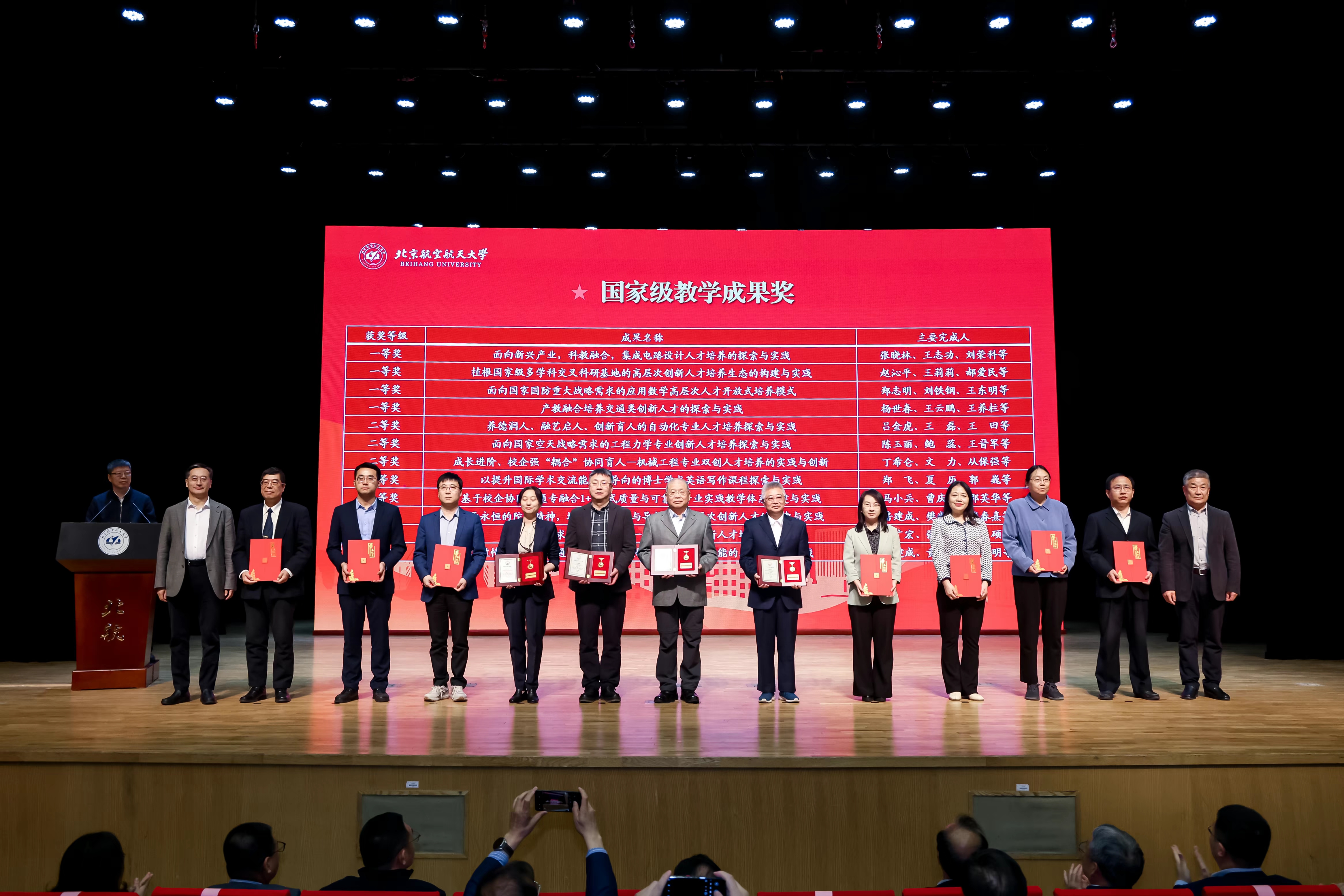 2023年,北航获得多项重大教育教学奖励,人才培养关键业绩显著提升。会议对国家级教学成果奖、国家“万人计划”教学名师、全国高校黄大年式教师团队、教育部虚拟教研室建设试点、宝钢优秀教师、第二批国家级一流本科课程、全国工程类专业学位研究生在线示范课程等多个奖项的获奖团队和教师代表进行了表彰。