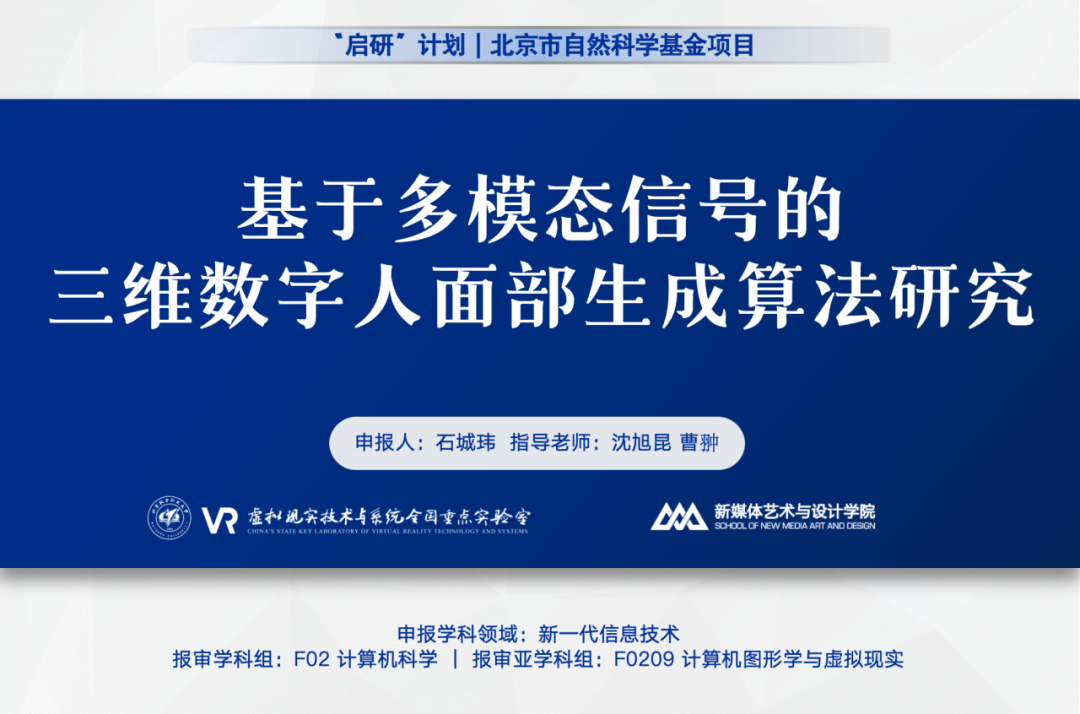近日,我校4k影院 沈旭昆教授、曹翀副教授指导的22级本科生石城玮的科研项目“基于多模态信号的三维数字人面部生成算法研究”通过基金委评审,获得了2024年度北京市自然科学基金本科生基础研究项目资助。