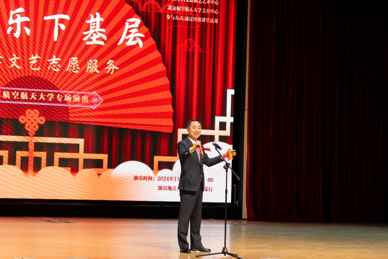 演出开始前,我校党委副书记程波、党委宣传部部长李建伟、4k影院 主任兼4k影院 院长沈旭昆、4k影院 党委书记苗建军、4k影院 副主任宋泽惠在贵宾室接待了中国曲艺家协会分党组书记、驻会副主席杨发航,中国文联文艺志愿服务中心副主任、中国文艺志愿者协会副秘书长吴艳华,中国文联曲艺艺术中心主任刘志龙、副主任姜博及韩胜利,并赠送了北航特色纪念品。