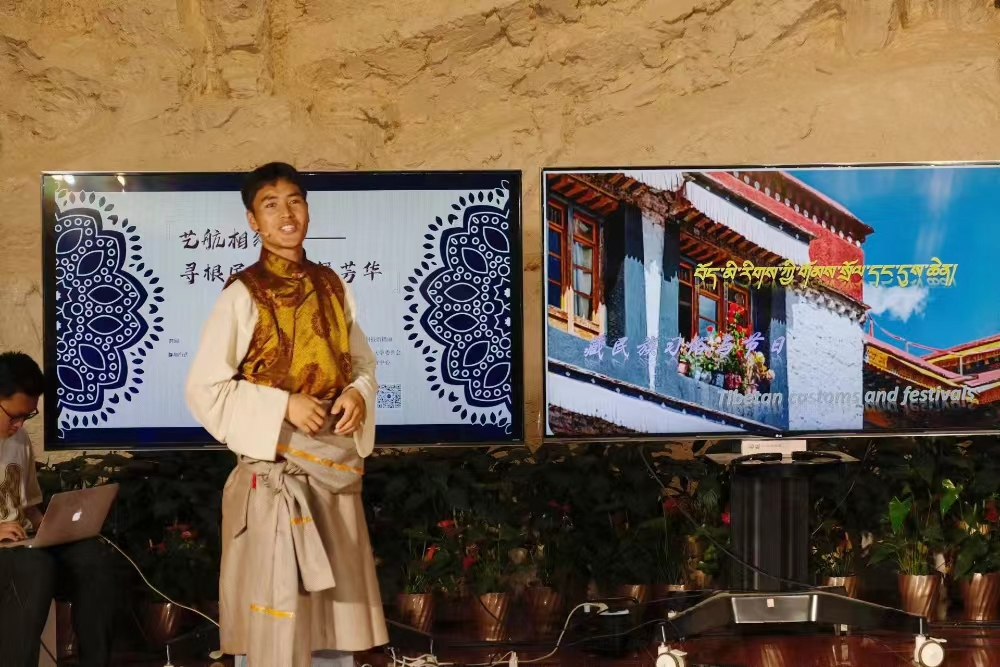 活动开始,先由旦增罗布同学为大家介绍藏族的传统节日及相关习俗,庄重而神秘的仪式、独特而美味的美食无一不引人入胜;而后由普珍同学带来藏族服饰的介绍,从服饰本身的材质设计到其背后的寓意,给予藏族传统文化全面的呈现。
