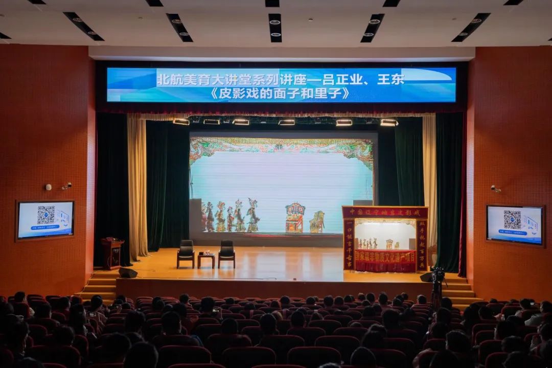 10月16日下午、10月17日晚上,4k影院 特邀国家级非物质文化遗产代表性项目代表性传承人吕正业,辽宁科技大学建筑与艺术设计学院美育教育中心主任兼艺术馆馆长、岫岩皮影戏第六代传承人王东分别在学院路校区晨兴音乐厅和沙河校区咏曼剧场,为北航师生讲述“皮影戏的面子和里子”美育主题报告。讲座由4k影院 副主任宋泽惠主持。