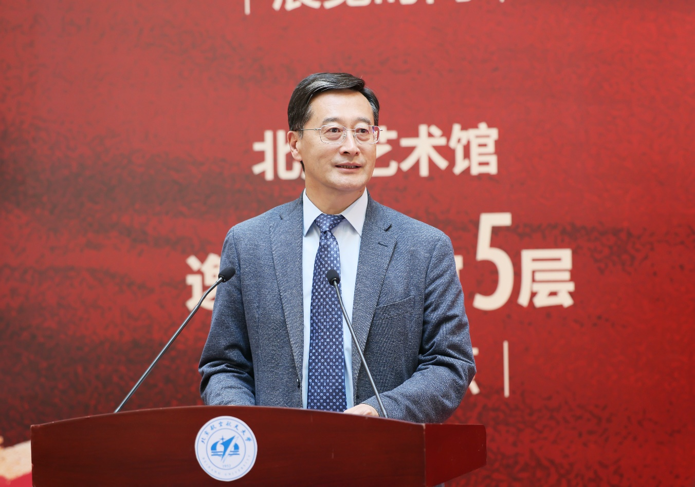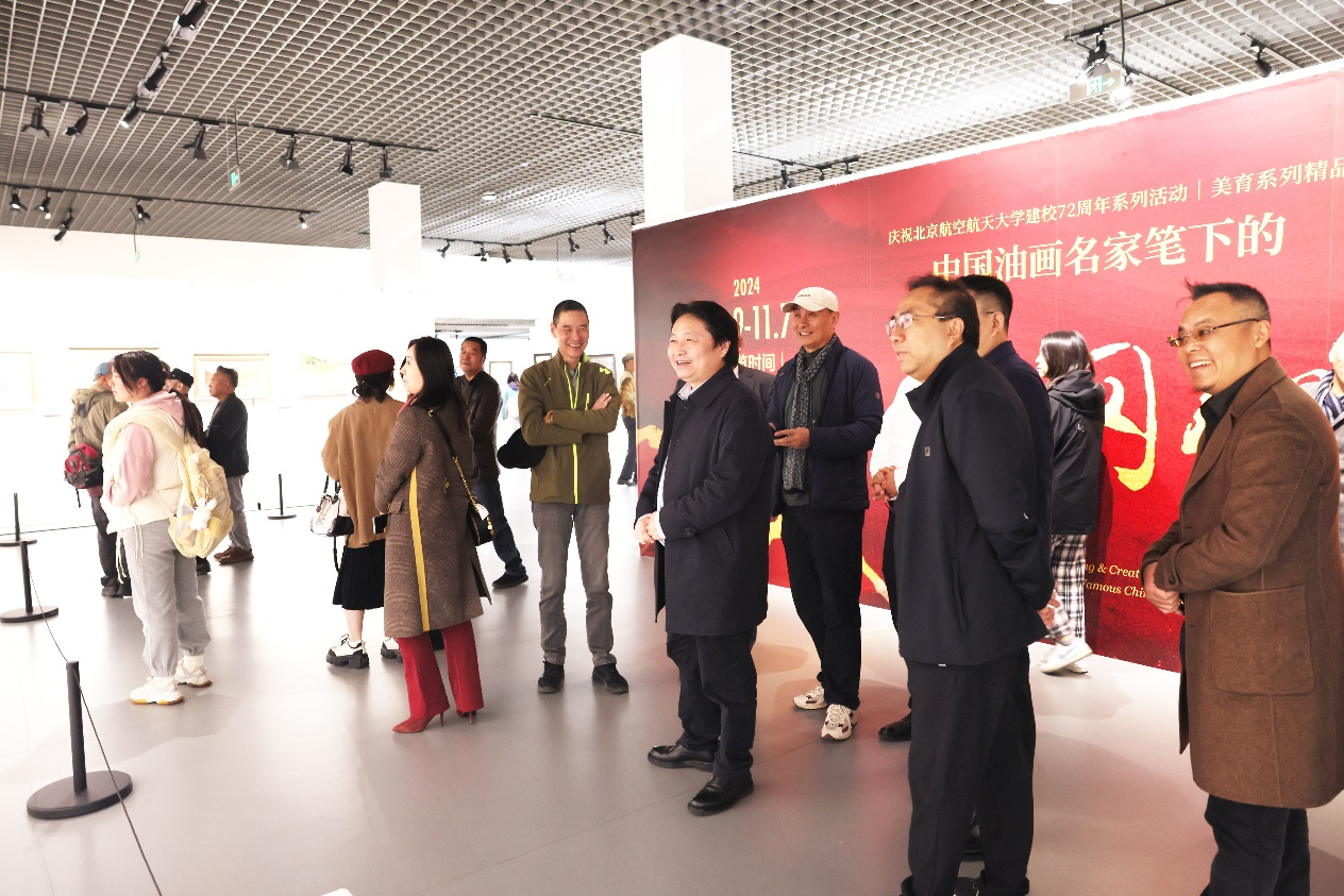 王云鹏对各位嘉宾的到来表示热烈欢迎,对文化和旅游部艺术发展中心的大力支持表示衷心感谢。他表示,今年是北航建校72周年,建校以来,学校始终传承红色基因,把服务国家作为最高追求,培养一流人才,打造国之重器,奋进在中国高等教育第一方阵前列。72载创业兴学,一代代北航人在砥砺奋进中涵育了爱国奉献的价值追求、敢为人先的魄力勇气、求真创新的科学精神、团结拼搏的奋进品格、担当有为的实干作风,形成了以“空天报国”为内核的北航精神。北航精神根植于听党话、跟党走的红色基因,井冈山精神承载着中国共产党人的初心和使命,二者薪火相传、一脉相承,都是时刻指引我们、鼓舞我们的“传家宝”。希望广大师生用好学校提供的美育资源,不断提升艺术修养,在展览中感受新时代油画家的创作成果和艺术才华,学习传承好革命文化,弘扬以“空天报国”为内核的北航精神,为建设中国特色、世界一流大学作出新的更大贡献。