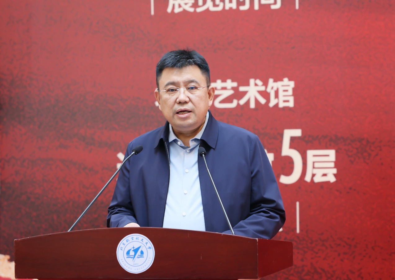 姚友超代表文化和旅游部艺术发展中心向与会嘉宾表示热烈欢迎和衷心感谢,向北航72周年校庆表示热烈祝贺。他表示,本次画展汇聚了当前油画名家的精品力作,不仅是对井冈山自然景观的再现,更是对革命历史记忆的深刻铭记、对中华民族精神家园的深情守望。作为新中国第一所航空航天高等学府,北航始终听党话、跟党走,赓续红色血脉,弘扬以“空天报国”为内核的北航精神,这与坚定信念、艰苦奋斗、实事求是、敢闯新路、依靠群众、勇于胜利的井冈山精神血脉相承。面向未来,艺术发展中心希望继续与北航携手,发挥各自优势,把更多一流的美育资源奉献给广大的学子。他表示,祝愿北航在新的征程上,继续发扬优良传统,勇攀科学高峰,为中华民族的伟大复兴贡献更多的智慧和力量。