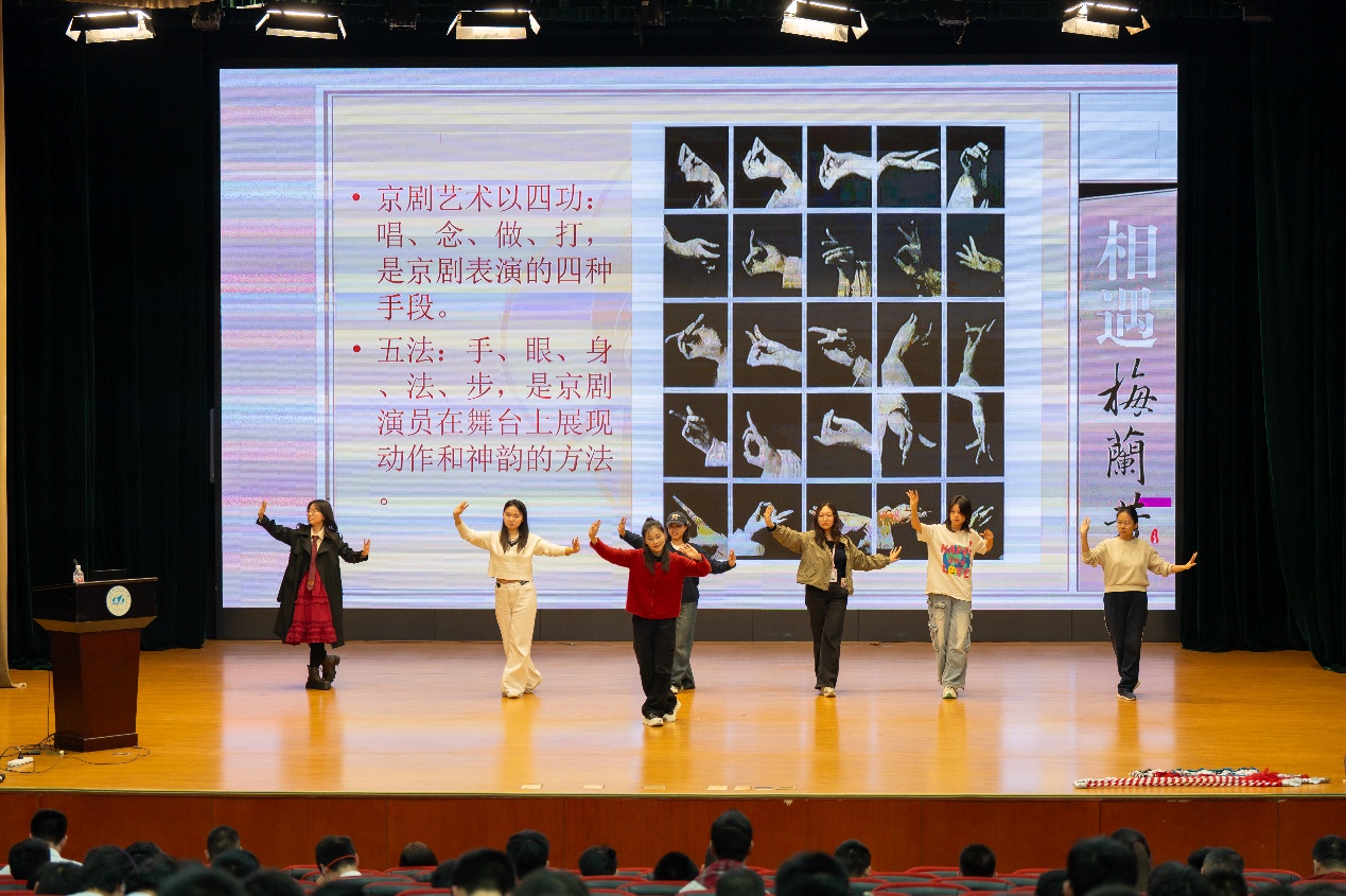 “戏曲进校园”北京高校之旅,以讲座为主要形式,辅以演出、展览参观、沉浸体验等多重形式,以“知戏,感戏,听戏,看戏”的理念,让高校学子了解戏曲,走进戏曲。张瑜结合梅兰芳先生的表演作品,讲解了京剧生、旦、净、丑各行当特点,京剧的四功五法以及梅兰芳生平等。