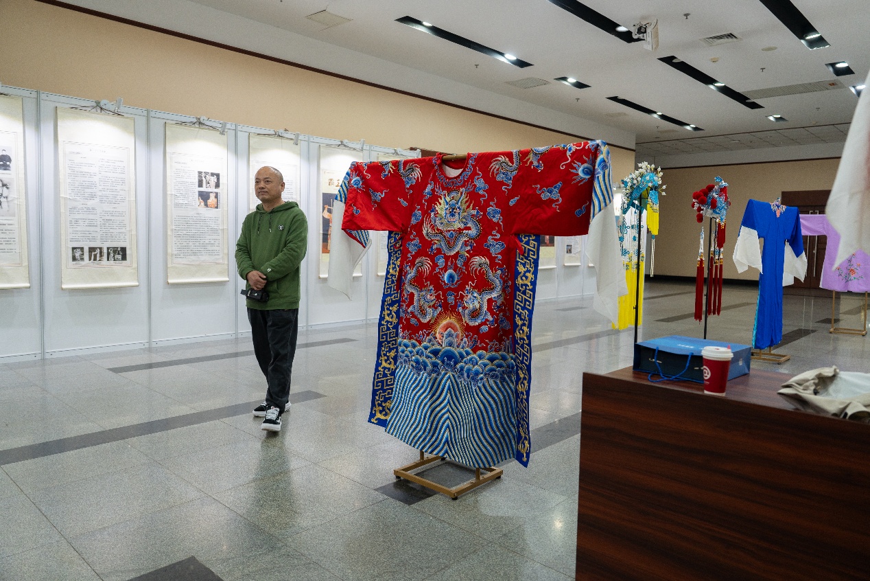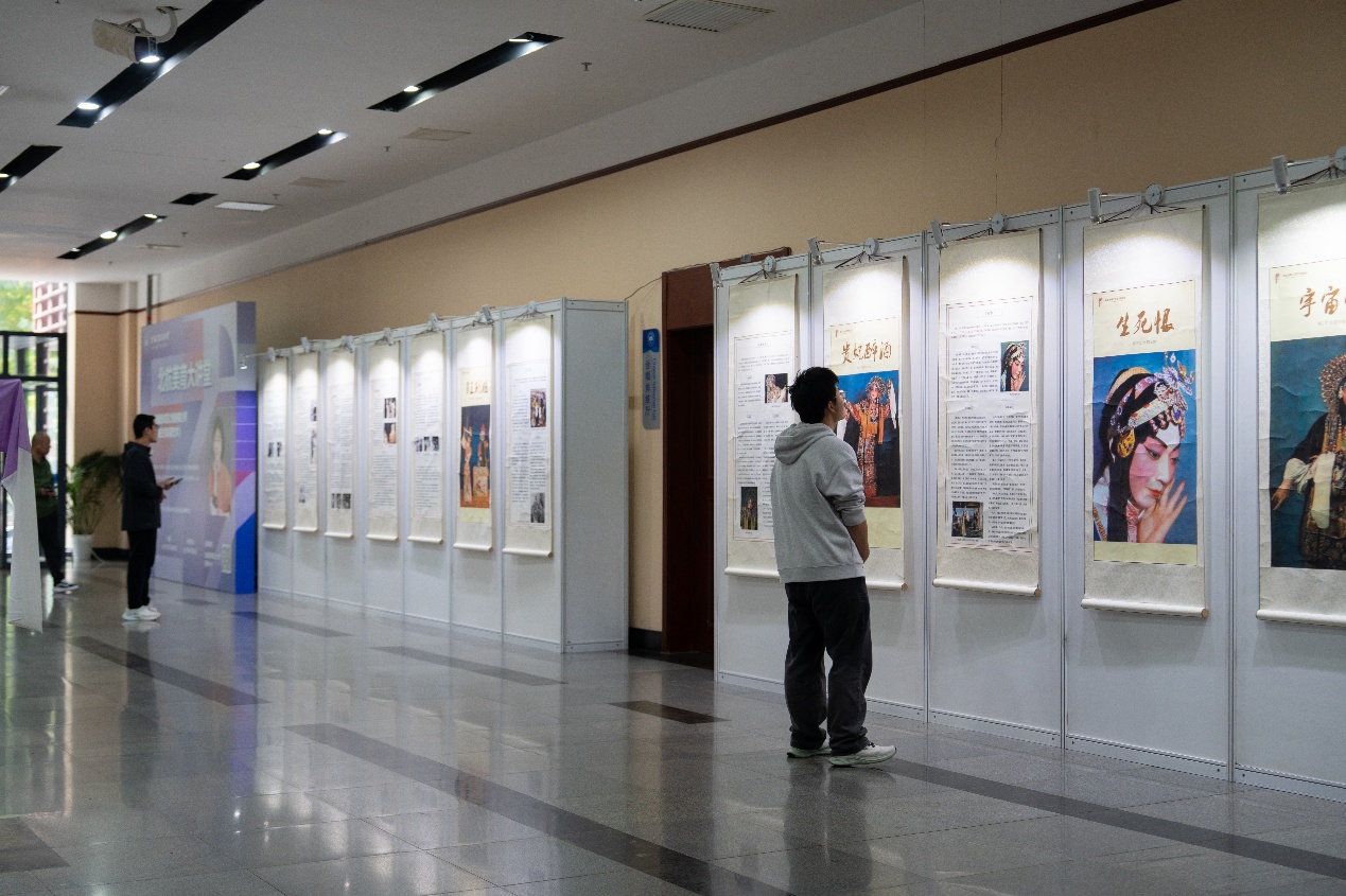 剧场外还布置了“相遇梅兰芳”特展,包含梅兰芳生平、学艺、创作、演出经历及京剧常识、行话解读、服化道盔等。