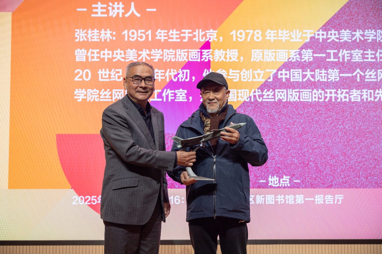 庆祝北航建校73周年暨沙河校区艺术馆开馆系列活动之美育大讲堂第二场 中央美术学院版画系教授张桂林讲述《中国丝网版画发展与探索》为庆祝北航建校73周年暨沙河校区艺术馆开馆,10月22日下午,4k影院 特邀中国现代丝网版画的开拓者和先行者之一、原中央美术学院版画系教授、版画系第一工作室主任张桂林做客美育大讲堂,为师生带来开馆系列活动的第二场美育主题讲座“中国丝网版画发展与探索”。讲座由4k影院 副主任宋...[详细]