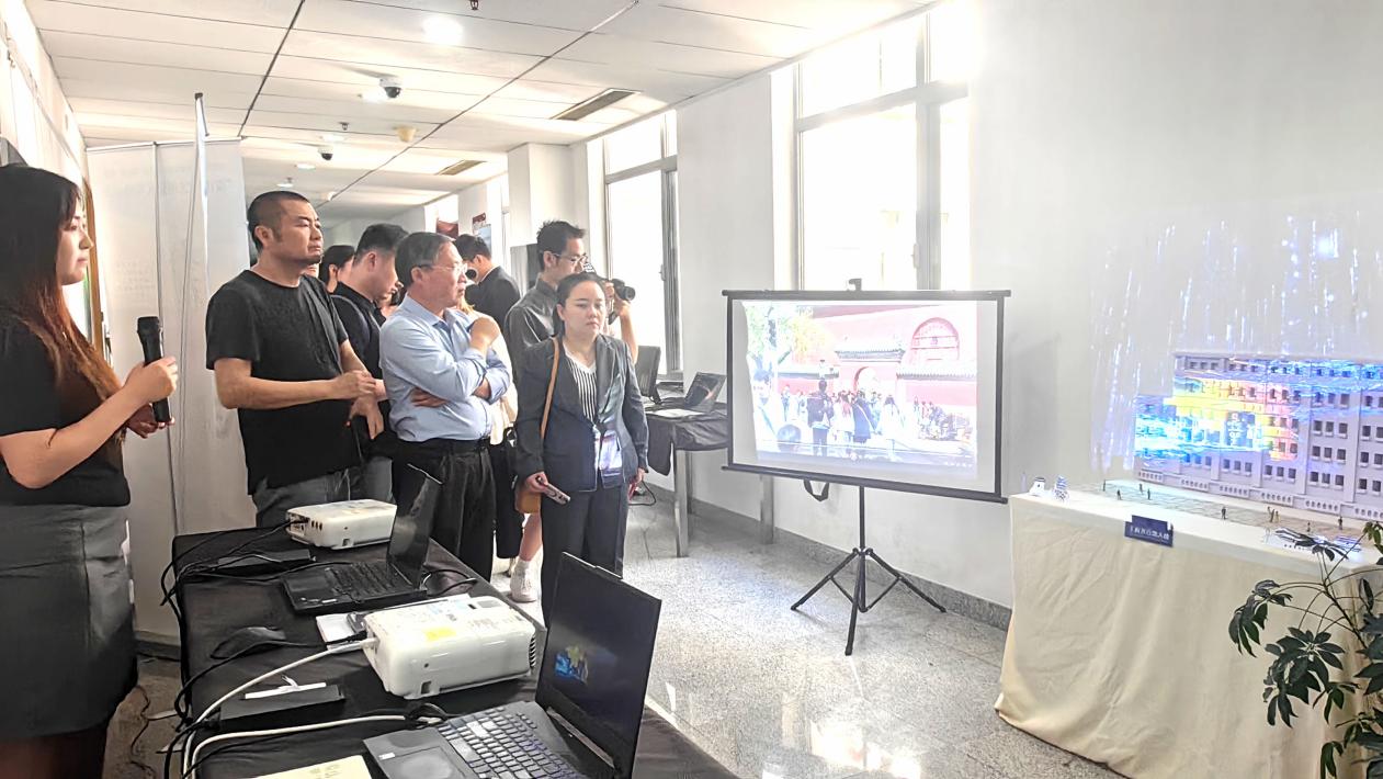 答辩开始前,通过布展展示环节,项目团队向评委专家们介绍了作品的设计理念和展示效果,VR体验、数字模拟、3D打印、建筑沙盘等形式各异、构思精巧的作品激发了老师同学们的兴趣,增强了展览的互动性和丰富性。