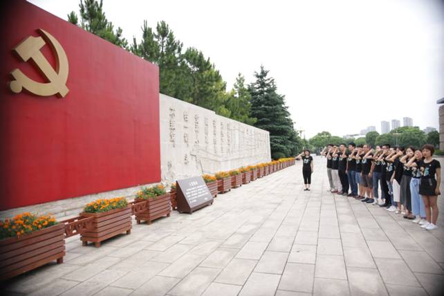 在南湖革命纪念馆宣誓墙前,师生党员们面对鲜红党旗庄严郑重地举起右手,在王群书记的领誓下,重温了入党誓词“我志愿加入中国共产党,拥护党的纲领,遵守党的章程……随时准备为党和人民牺牲一切,永不叛党。”。