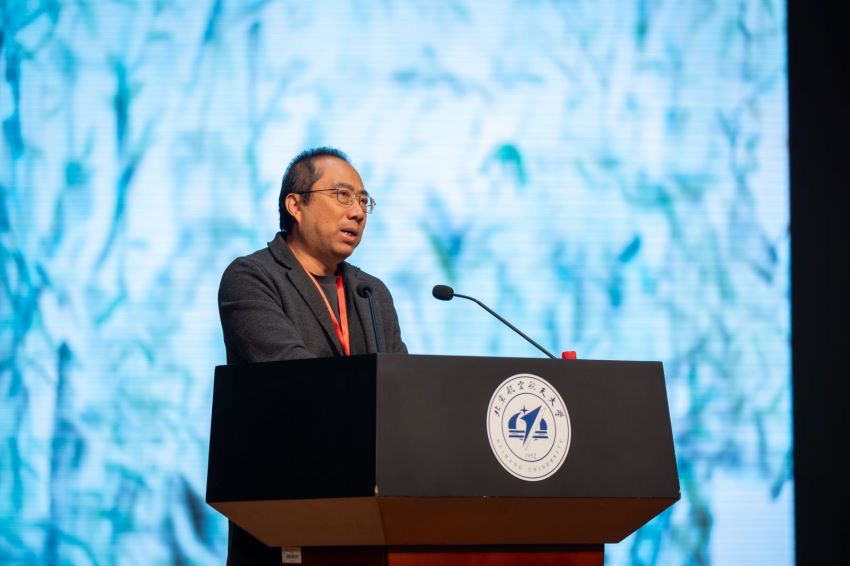 文化和旅游部艺术发展中心副主任,“姹紫嫣红·时代意象——中国国家画院花鸟画主题创作学术邀请展”国家艺术基金项目负责人乔宜男出席开幕式并致辞,表示希望与北航携手、与艺术家朋友们携手,发挥文化和旅游部艺术发展中心优势,把更多一流的美育资源展现给同学们。中国国家画院副院长于文江代表中国国家画院对展览的开幕表示祝贺,介绍了本次画展具有画家选择有代表性、以大尺幅及画家的代表作为主、以主题性创作为先导三个特色。艺术家代表陈鹏发言,他指出展览非常具有代表性的表现了这个时代中国花鸟画的新意、发展和探索,相信展览对于学校的教育以及美育的发展研究,将会起到良好的作用。