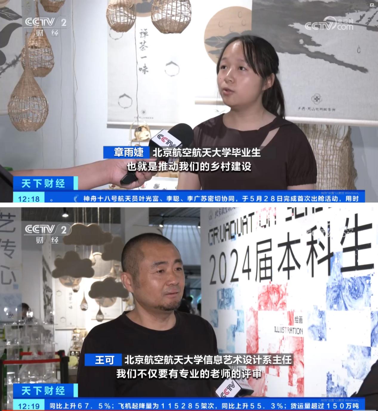 2024届本科生毕业展在北航艺术馆展出。展览包含绘韵雅集、信艺传心、影动新境、数艺创界四个主题,聚焦传统与现代的传承与创新、艺术与科学的交叉与融合,进行全方位的设计实践和艺术展现。其中王可教授指导章雨婕同学的毕业课题“艺术乡建文创产品在地性设计研究”引发关注,中央电视台财经频道进行面对面采访,并于“财经天下”栏目播出。该课题顺应乡村振兴和艺术乡建等国家重大发展战略的时代需求,以四川雅安茶马古道文创产品为例进行“在地性”研究,旨在通过设计创新等社会实践活动激活沉睡的乡土文化,探索艺术介入乡村建设、赋能乡村振兴的有效途径。
