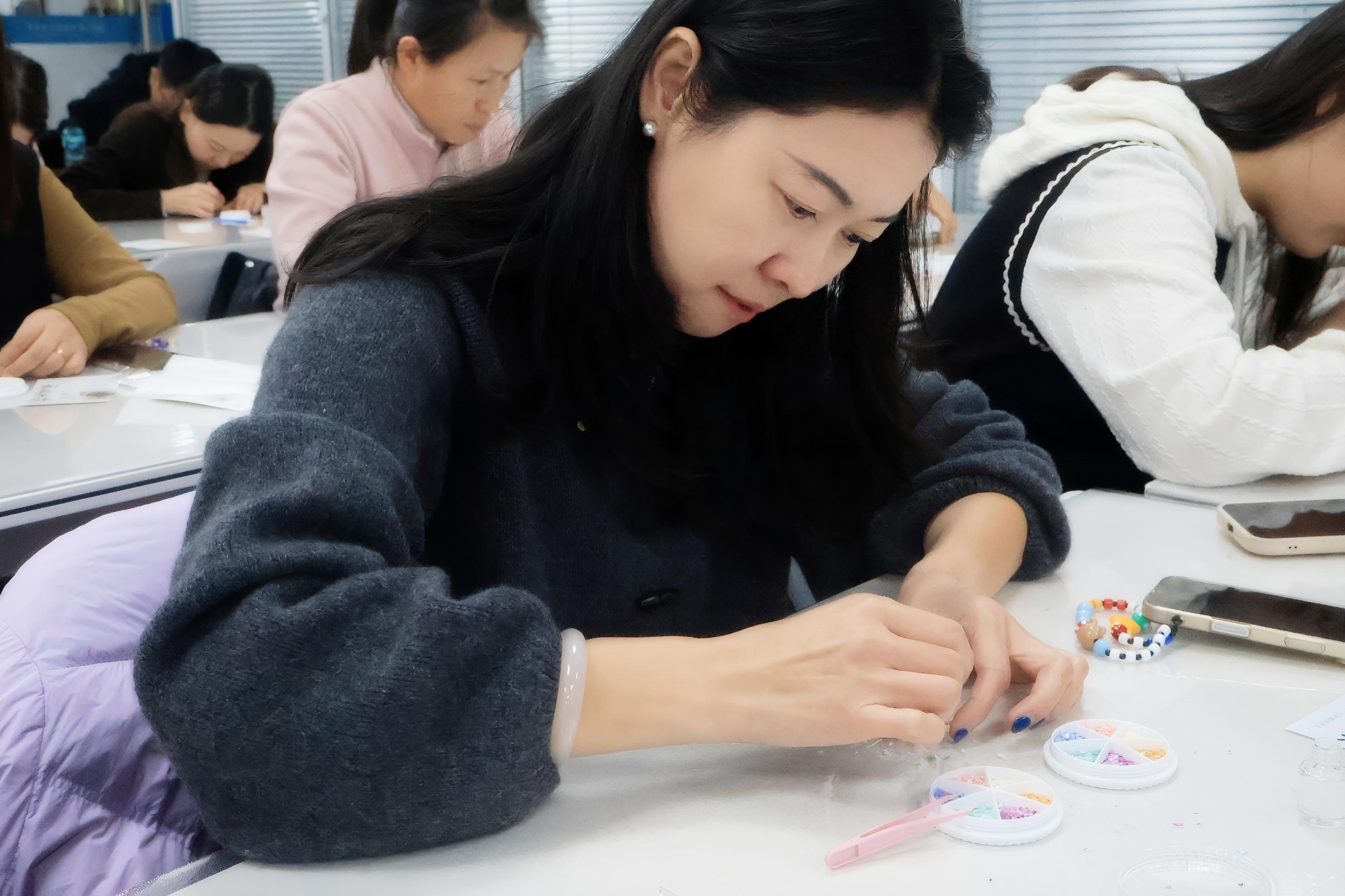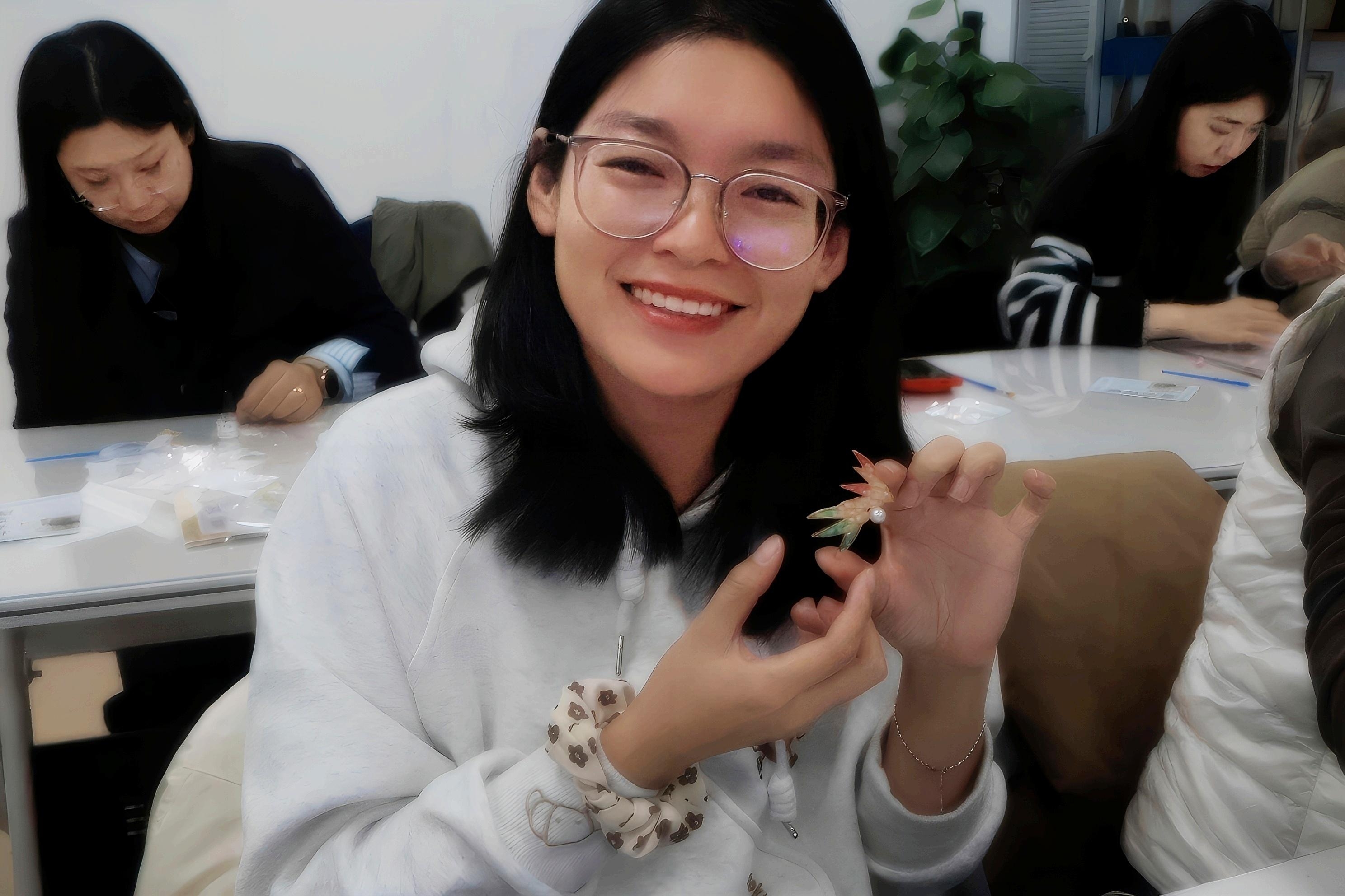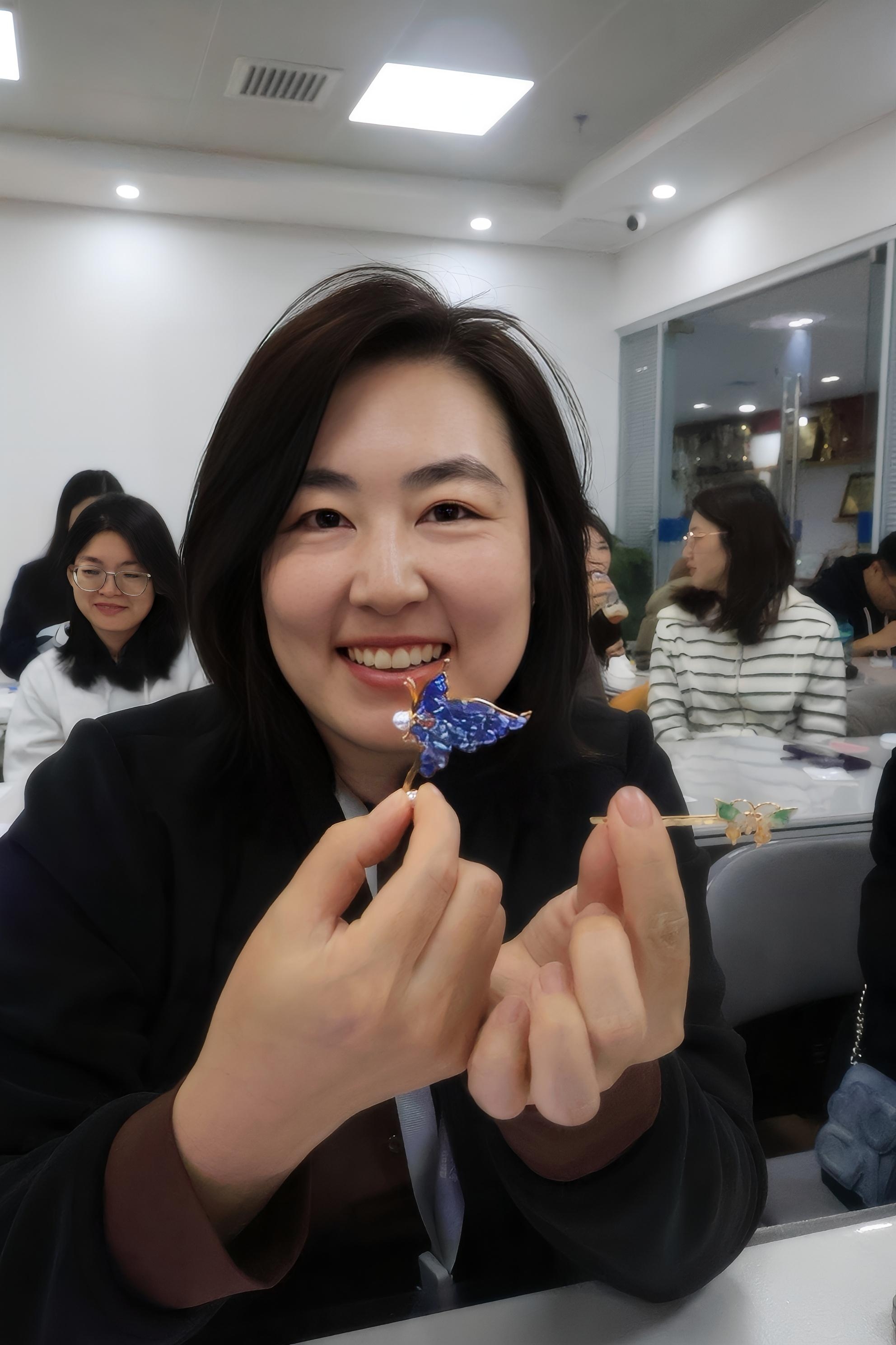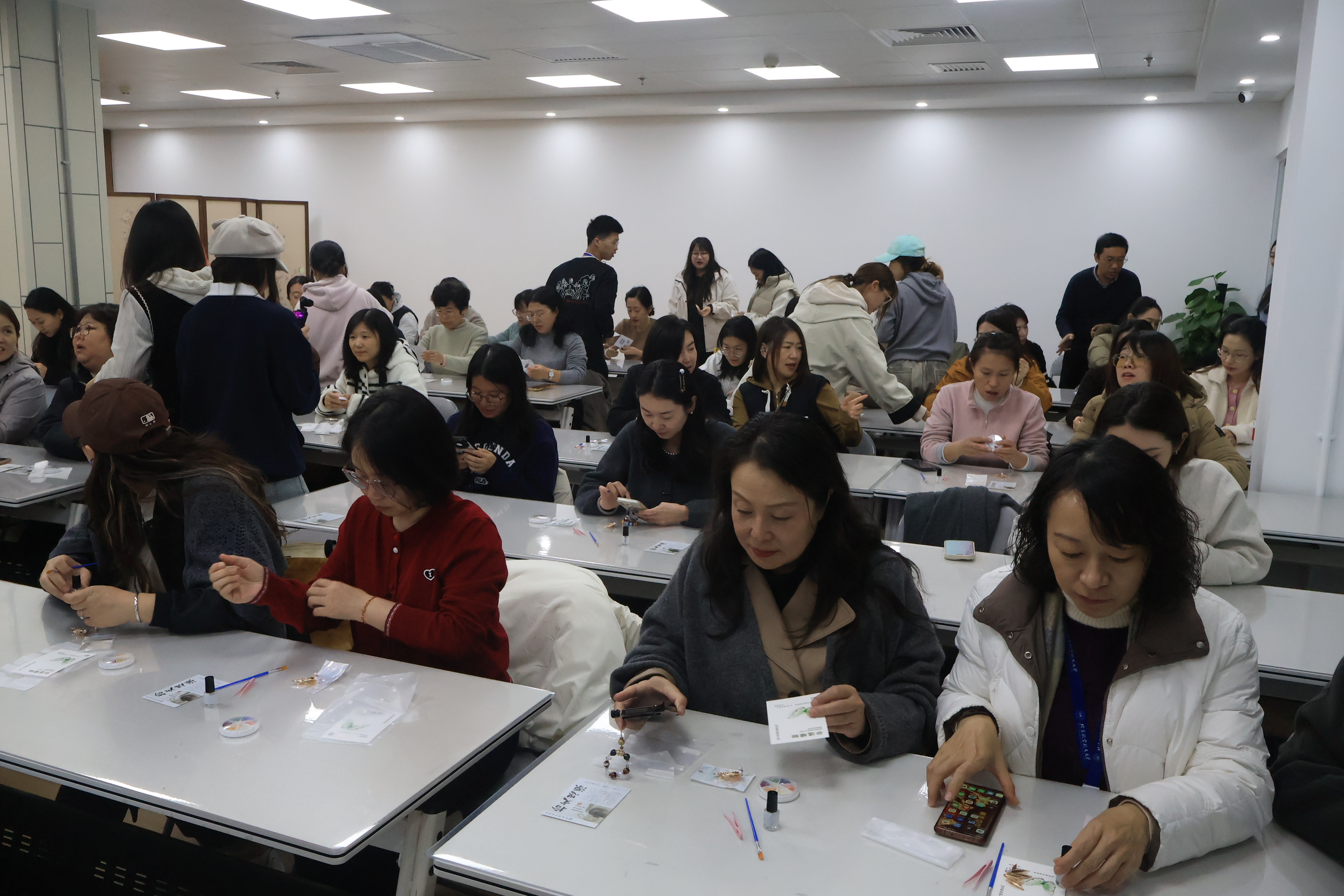 活动现场笑语盈盈,近50名参与者均顺利完成作品,不少老师当场佩戴上自己亲手制作的螺钿胸针,脸上洋溢着满满的成就感。大家纷纷表示,这次体验不仅学会了一项传统手艺,更在慢下来的创作过程中释放了工作压力,深刻体会到“工匠精神”中专注、严谨的内核。来自不同机关部处与学院的教职工们通过活动增进了交流,在共同感受非遗之美的过程中凝聚了情感。