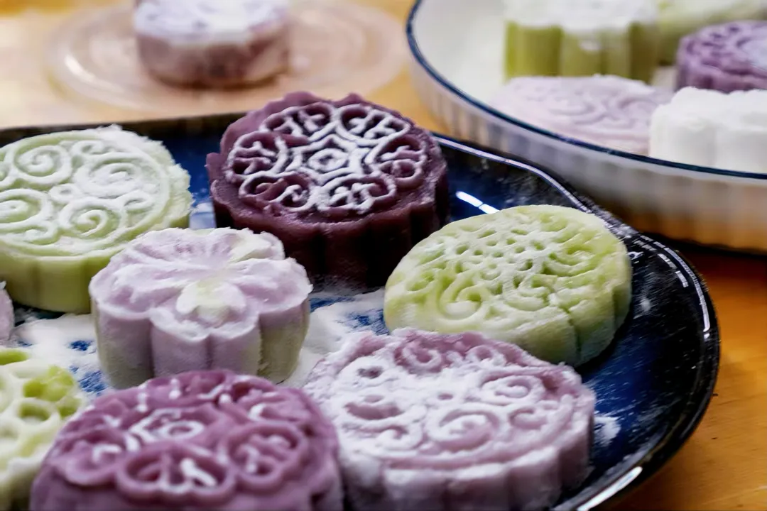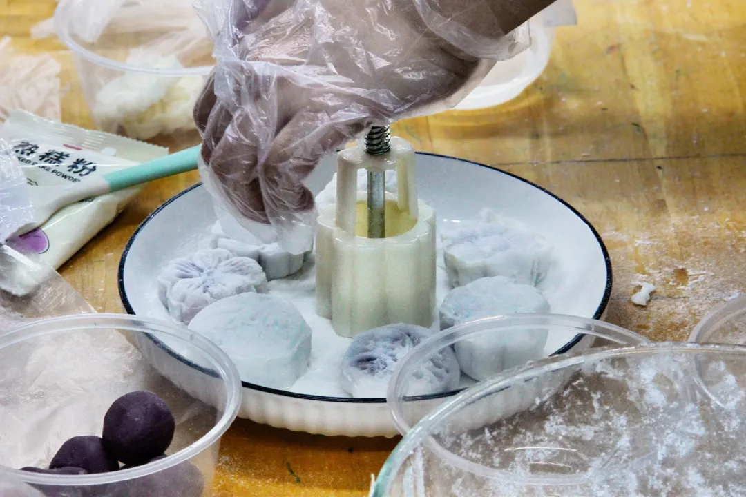 “原来揉冰皮要掌握好力度,才能让月饼皮更细腻!”“这个玉兔造型的模具太可爱了,我要给家里孩子做几个!”活动现场氛围热烈而温馨,师生们热情高涨,纷纷动手尝试。有的教职工专注地捏制冰皮,小心翼翼地包裹馅料,确保月饼造型完整;有的则发挥艺术创意,用不同颜色的冰皮搭配出渐变效果,或是在月饼表面印上“中秋快乐”“艺院同心”等字样,让小小的月饼承载满满的心意。不一会儿,一个个造型精致、色彩诱人的冰皮月饼便新鲜出炉,大家拿着自己的作品拍照留念,脸上洋溢着成就感与幸福感。