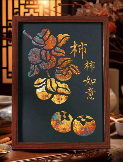 为降低体验门槛、提升参与乐趣,学院工会提前准备了经传统工艺处理的成品铜箔材料,老师们无需参与复杂灼烧环节,可直接专注于创意设计。在拾文思源实践队队员的耐心辅助下,大家充分发挥想象力,精心构思布局、挑选色彩纹理各异的箔片,通过剪裁、拼贴、组合等步骤,将零散的铜箔逐步构筑成心中的图景。活动现场氛围专注而愉悦,老师们时而静心创作,时而交流构图技巧,在指尖翻飞间,一幅幅流光溢彩、独具韵味的烧箔画作品陆续诞生。